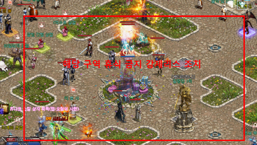 - 사냥터 이동 , 아이템 구매 , 컨텐츠 참여 등 이동함에 있어 불편함이 없도록 휴식을 진행하는 캐릭터는 NPC 기준 밖으로 나가서 휴식을 진행해주시기 바랍니다.